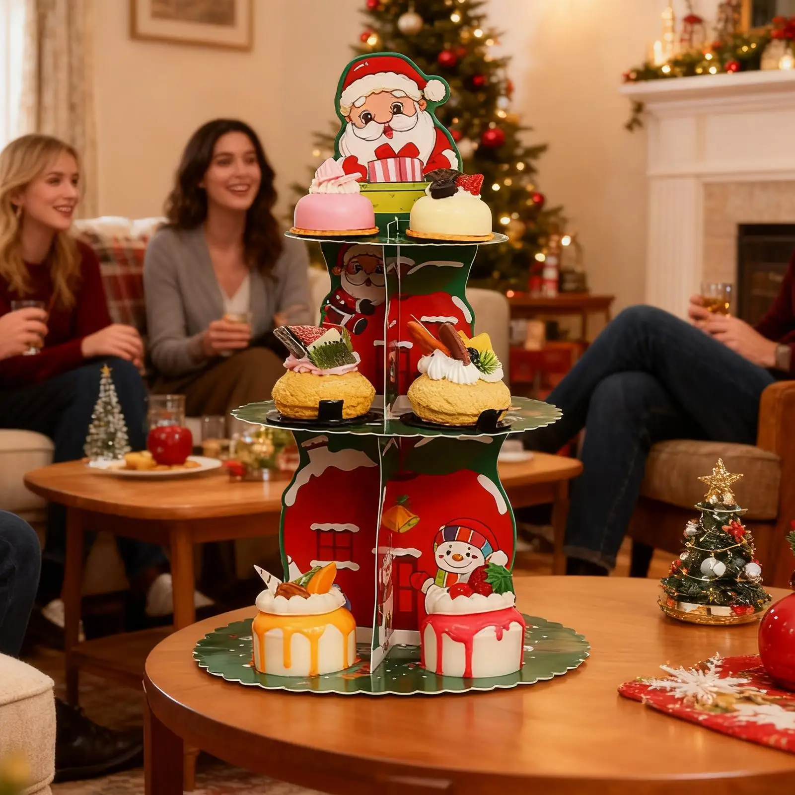 4.Space-Saving Design: The Christmas Cupcake Stand Holder features a graduated diameter layers design that maximizes vertical space for displaying desserts while maintaining a compact footprint